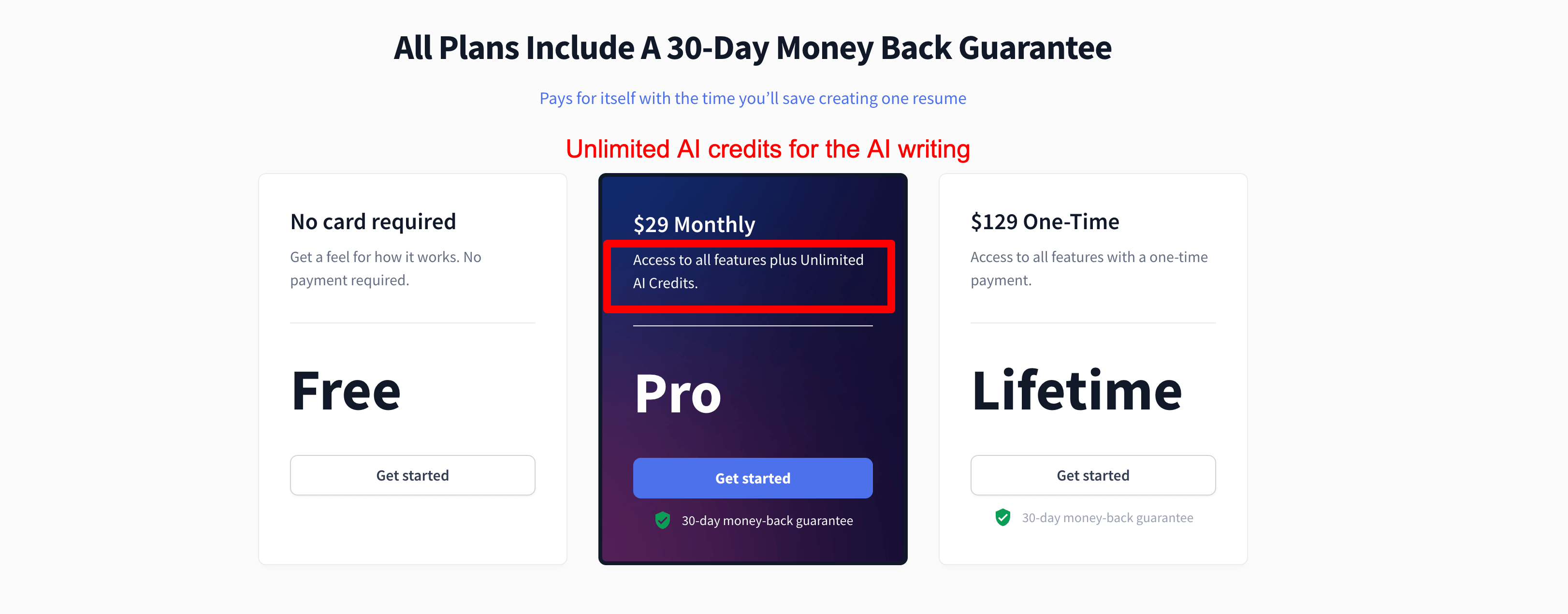 But, they also offer a lifetime subscription. Updating from the free to the pro version will give you access to more resume templates, plus unlimited AI writing credits, which can accumulate fast on the free version.