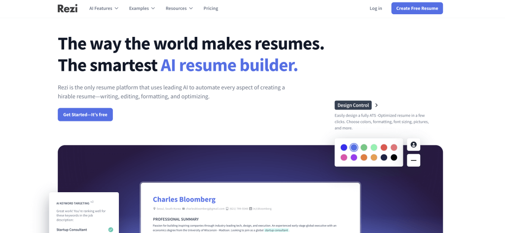 Rezi AI is a resume builder that utilizes artificial intelligence technology to help you create and format your resume from beginning to end.