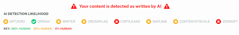 - Undetectable AI could be a better tool. It has some flaws.